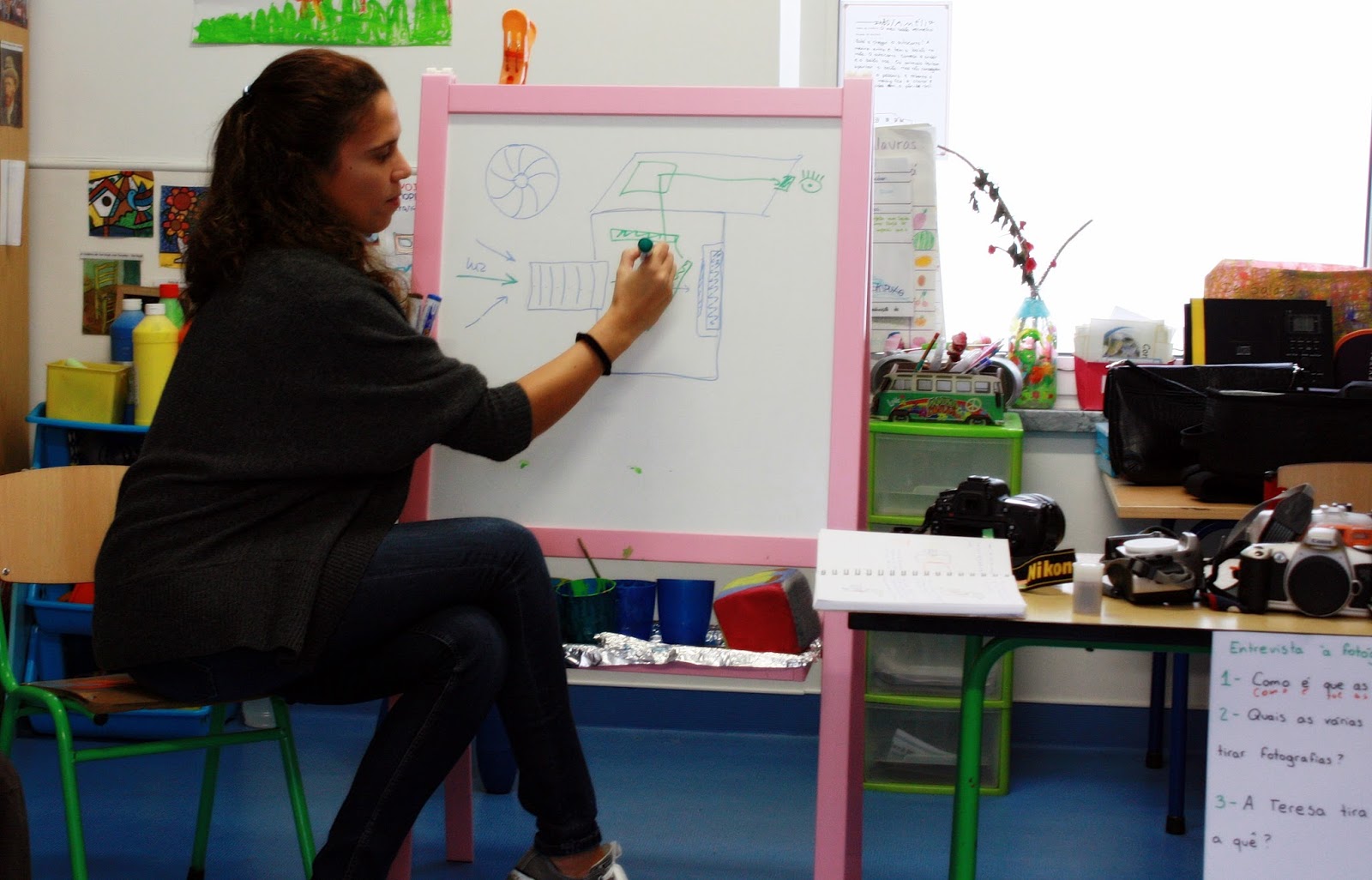 ... fizemos uma exposição aberta a toda a comunidade escolar e às famílias para mostrarmos o projeto, os nossos desenhos à vista, as fotografias que tiramos e os materiais que fomos construindo.