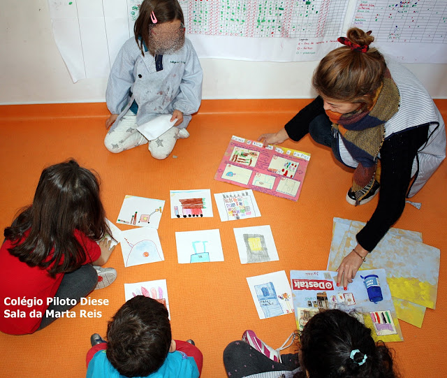 A sala da Carmo está a realizar um projeto de sala, que acabou por estender a toda a escola, cuja fase inicial foi fazer o levantamento de várias coisas que as crianças gostariam de ter no recreio. O nosso recreio foi crescendo e tendo cada vez mais coisas construídas pelas crianças, pelas famílias e pela comunidade - tenda de índios, carrinhos de madeira, carrinhos de mão, esteiras, pistas de carros...