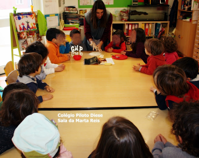 Primeiro, comunicamos aos amigos da sala porque achamos que seria mesmo importante que todos ficassem a saber bem a importância do papel, para que não haja desperdício.
