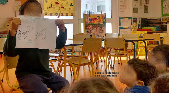 Fizemos pares, desenhamos o nosso colega, pensamos acerca do que sabemos uns sobre os outros... Partilhamos, tornamo-nos comuns, fomos criativos, observamos e descobrimos particularidades!