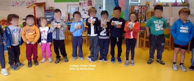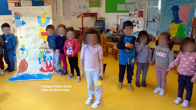 Na nossa sala o poema escolhido foi "Quanto custa?". Primeiro falamos sobre as várias partes do poemas - pergunta e resposta - e depois organizamo-nos em pequenos grupos para brincar com as palavras, mimar o poema e declama-lo à sala da Mónica. Ainda conseguimos descobrir as palavras que rimam!!