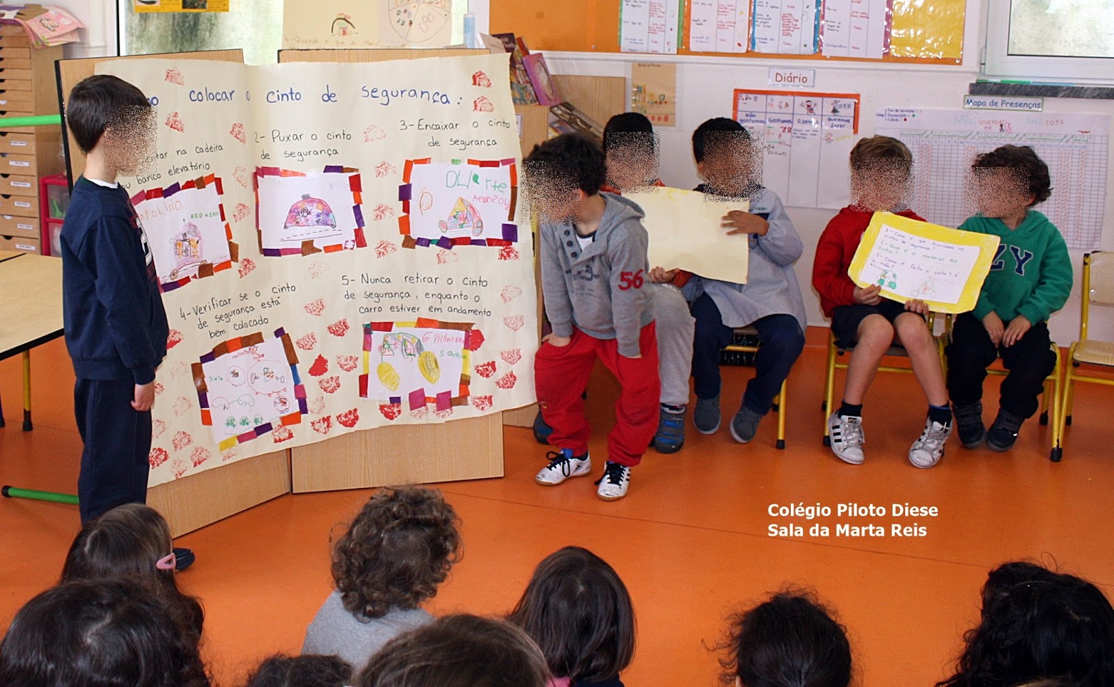 Neste projeto experimentamos pôr o cinto de segurança, percebemos o mecanismo, simulamos várias ações e ficamos peritos na segurança rodoviária. Com um cartaz, alertamos para a importância de colocar corretamente o cinto de segurança.