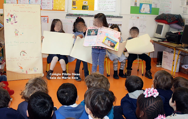 Cada sala trabalhou um poema e apresentou-o. A sala da Mónica apresentou-nos o poema "O que uma criança sofre", acompanhado de um magnífico registo!